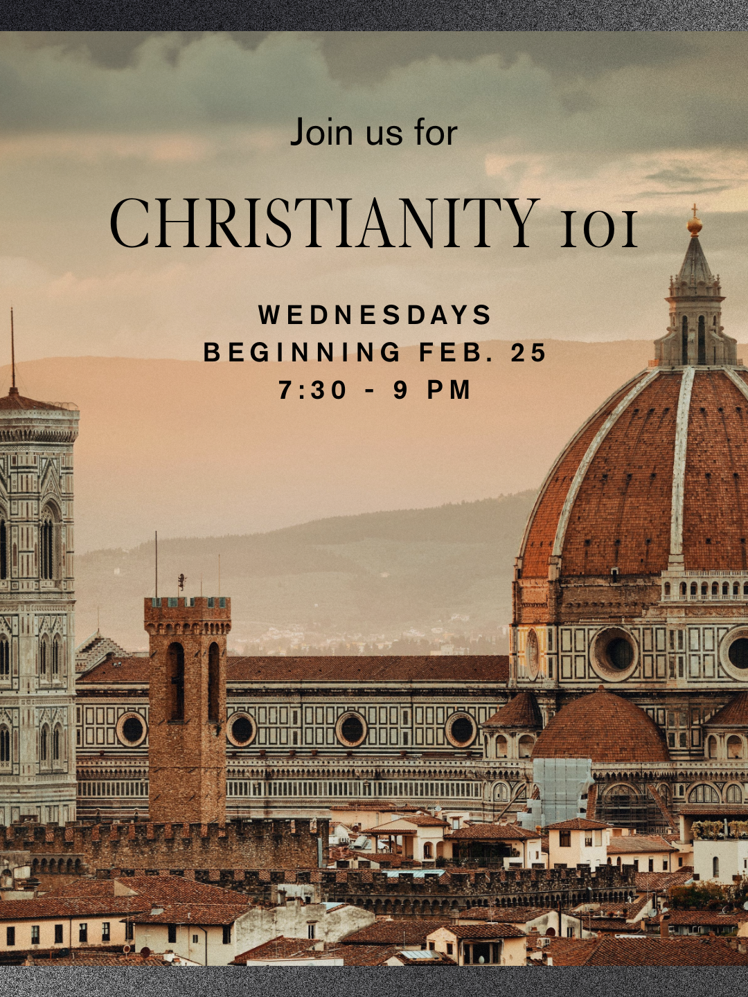 Christianity 101 is a twelve-week, discussion-based class on the foundations of the Christian faith: the Gospel, the Apostles’ Creed, the Lord’s Prayer, and the Ten Commandments.
